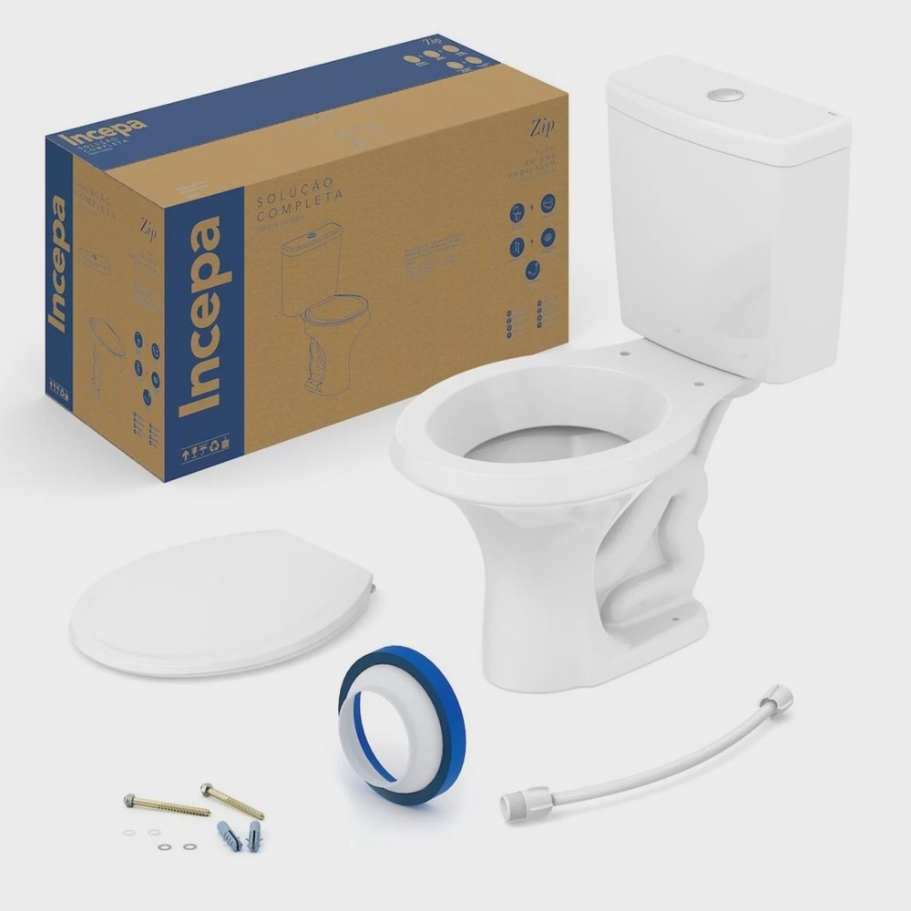 Kit de bacia com caixa acoplada 6L e itens de instalação Zip da Incepa