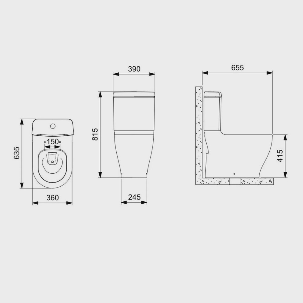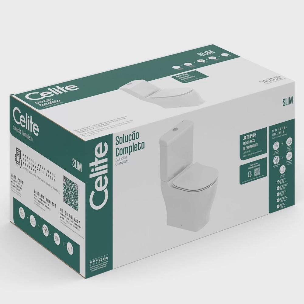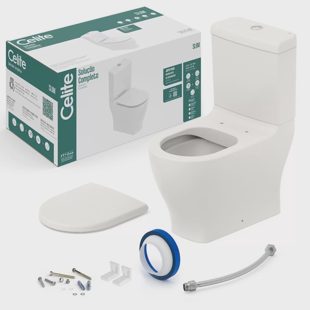 Solução completa de Kit de bacia com caixa acoplada, assento e itens de instalação da linha Slim da Celite.
