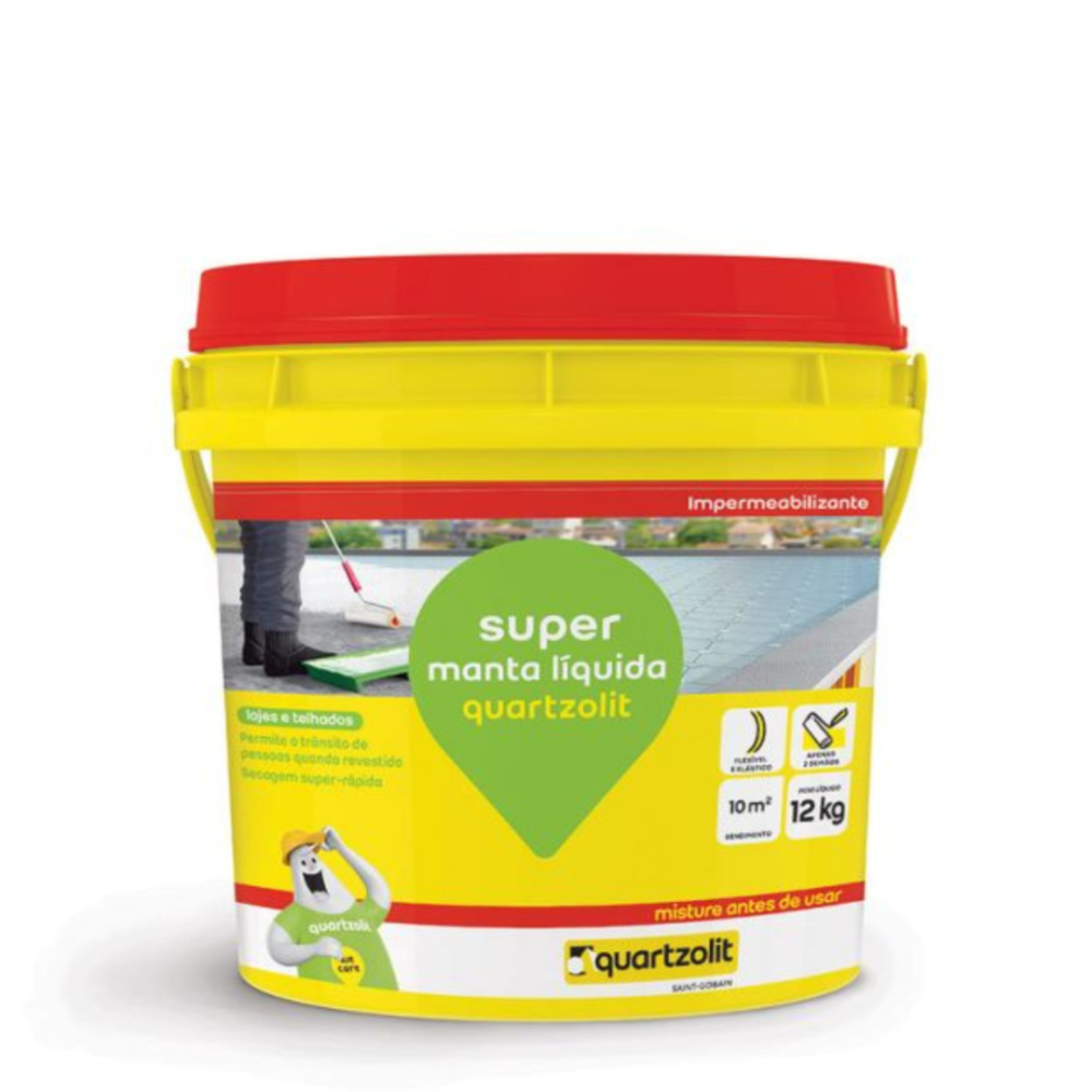 super manta líquida quartzolit é uma manta flexível para impermeabilizar coberturas com e sem trânsito, como lajes de concreto armado, telhas de fibrocimento, telhas cerâmicas e superfícies metálicas (telhas, rufos e pingadeiras de lata galvanizadas).