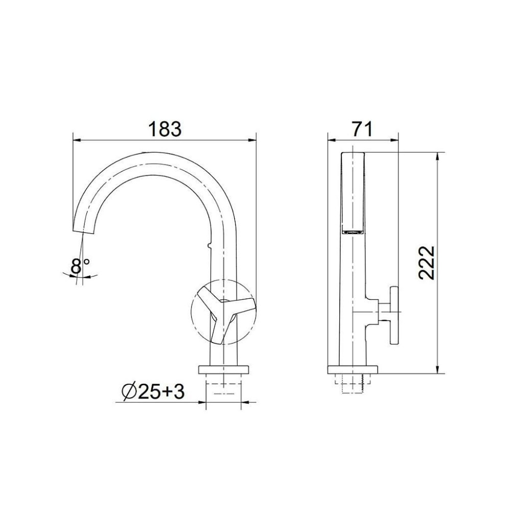 O desenho da bica leva a água exatamente para o centro da cuba e ela possui um arejador embutido, que garante até 90% de economia de água ao misturá-la com o ar durante o uso.